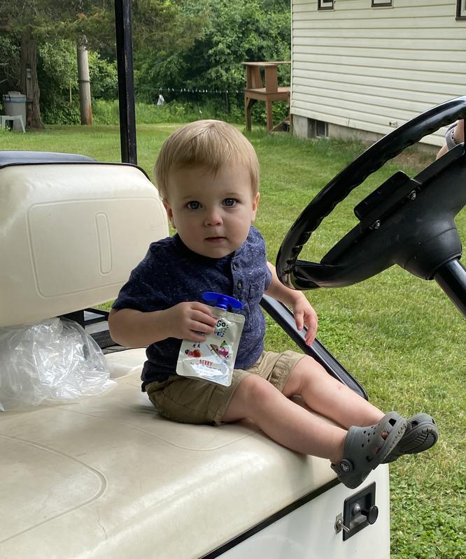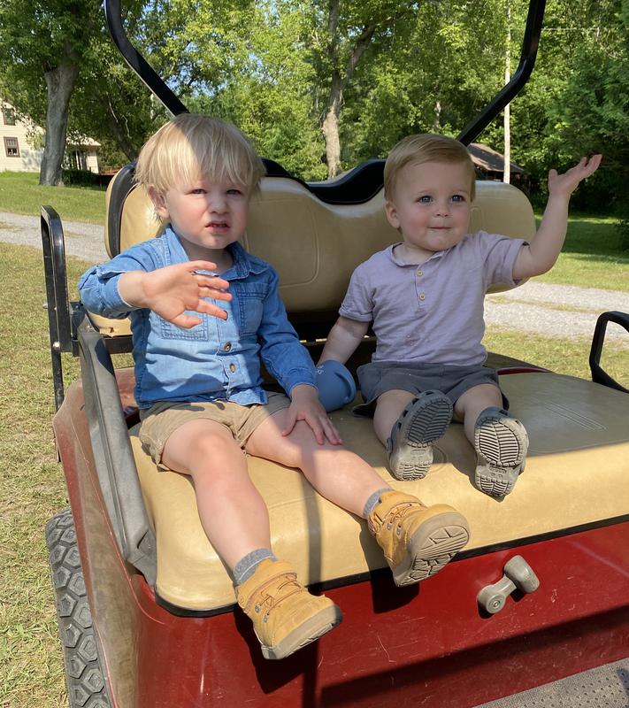 Fletcher and Robbie love to ride in the golfcart, or just sit in it for their snacktime.