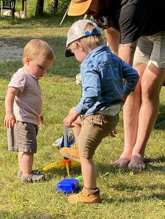 Fletcher and his dad play Tetherball, an old tradition at Lloyd's Cottages.  But Jackson thinks it is a sandbox.  It definitely is and can be both.